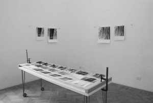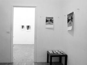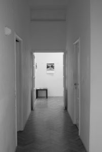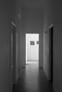 Ben si presta Interno 14 – un’infilata di stanze che richiamano più l’atmosfera della home gallery che un asettico contenitore espositivo – ad accogliere la mostra di Germano Serafini (Roma, 1975). Che allestisce una vera e propria camera oscura per stampare, in un poetico e rigoroso bianco e nero, le sue fotografie scattate ancora su pellicola.