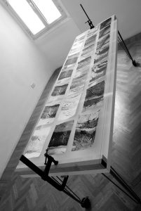 Il titolo di questa mostra, CAMERE OSCURE, si riferisce infatti, in modo duplice, alle affascinanti sale di Interno 14, teatro della mostra, e alla vera e propria camera oscura che Serafini ha costruito in una di esse per dare vita tangibile alle sue fotografie in bianco e nero, che scatta ancora in pellicola con il procedimento affascinante e complesso di stampa ai sali d’argento su carta baritata, tecnica che l’artista ha potuto affinare anche grazie al magistero di suo padre Adolfo, che è stato cromista alla zecca.